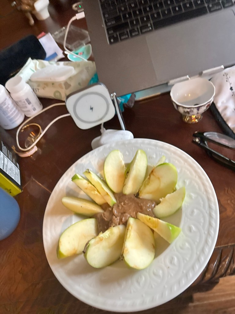 The snack tastes better after that. Sweeter. Crunchier. The nut butter hits different when you earned it through actual effort instead of autopilot. I slice the apple, with one hand (and the edges of my counter for stabilizing said apple), into perfect wedges splayed around the edges of the bowl, dollop the butter, then lick the spoon clean and go back for finger scoops straight from the jar because rules are for people who did not just fight gravity and win.